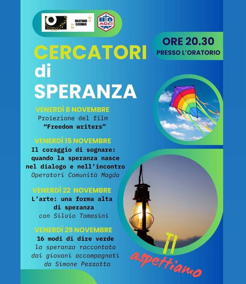 Presso l'Oratori di Casnigo si terranno 4 incontri relativi al progetto "Cercatori di Speranza", tutti i venerdì di novembre.