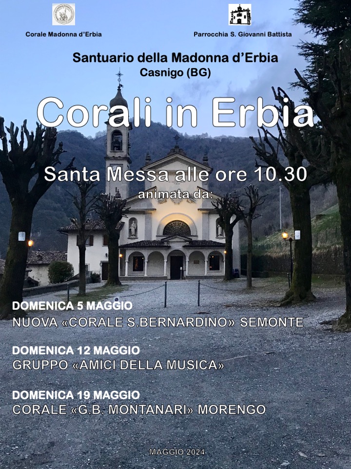 Ogni domenica di maggio al Santuario della Madonna d'Erbia a Casnigo. Le celebrazioni saranno animate dalle corali: