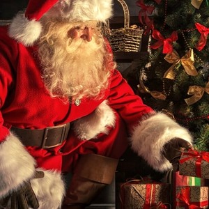 Babbo Natale saluta i bambini nel centro storico di Casnigo in piazza San Giovanni Battista. Distribuisce doni ai bambini del paese, con panettone, thè e vin brulè offerti dai volontari.