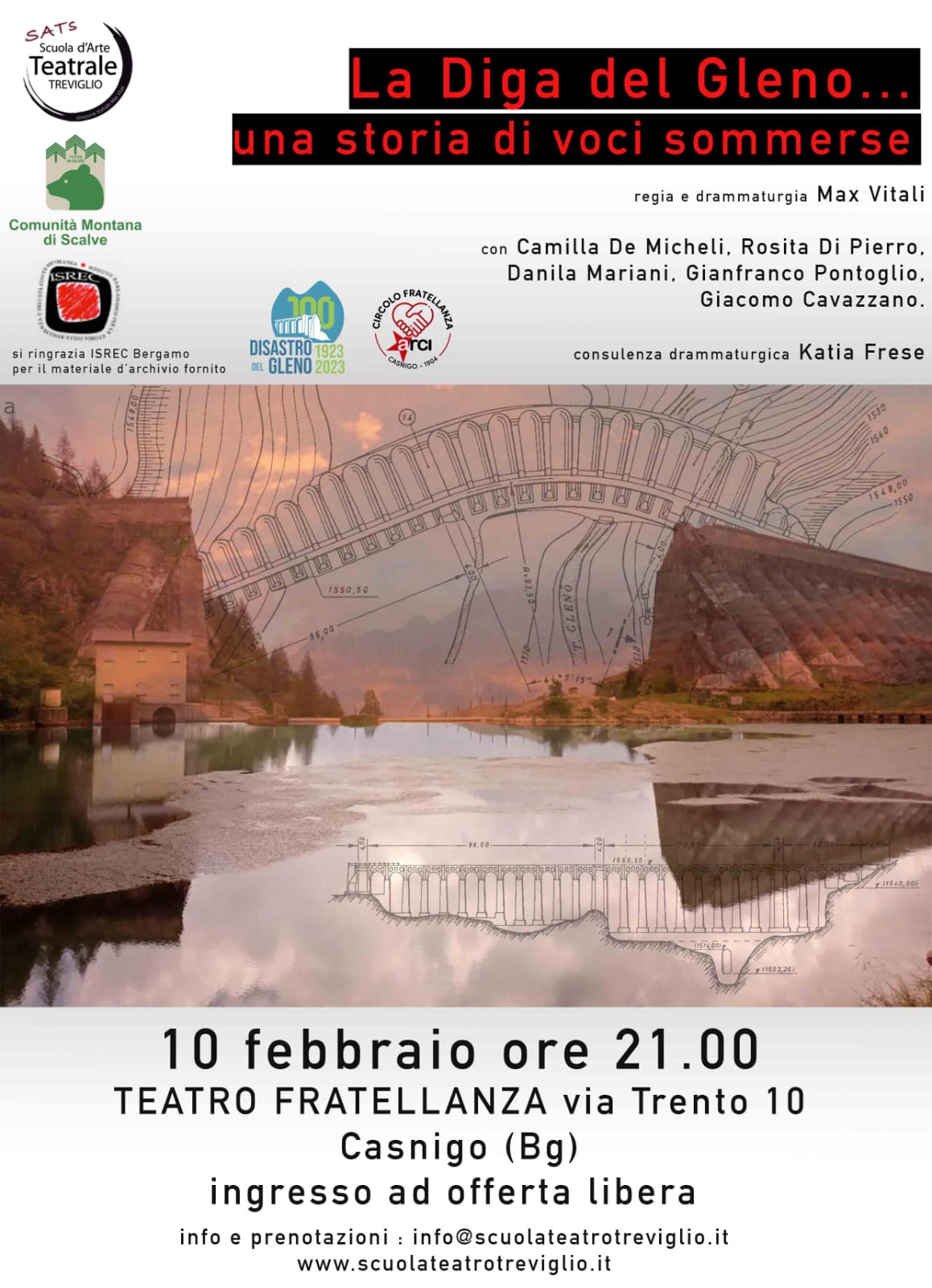 La Diga del Gleno... una storia di voci sommerse con Camilla De Micheli, Rosita Di Pierro, Danila Mariani, Gianfranco Pontoglio, Giacomo Cavazzano, consulenza drammaturgica a cura di Katia Frese.