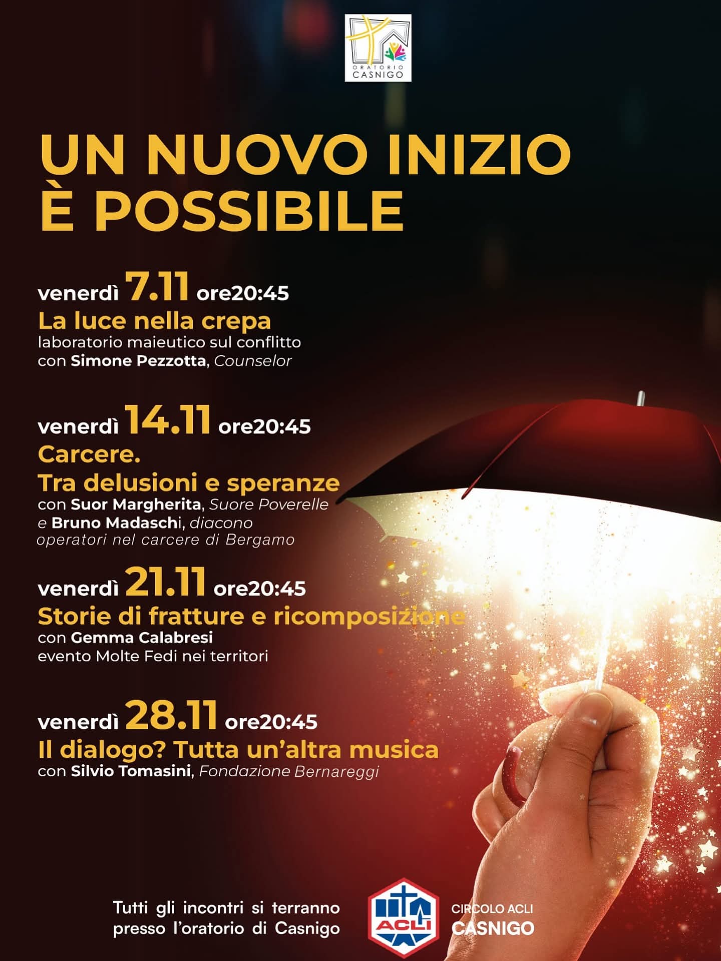 Gli incontri si terranno presso l’Oratorio di Casnigo, alle ore 20:45.