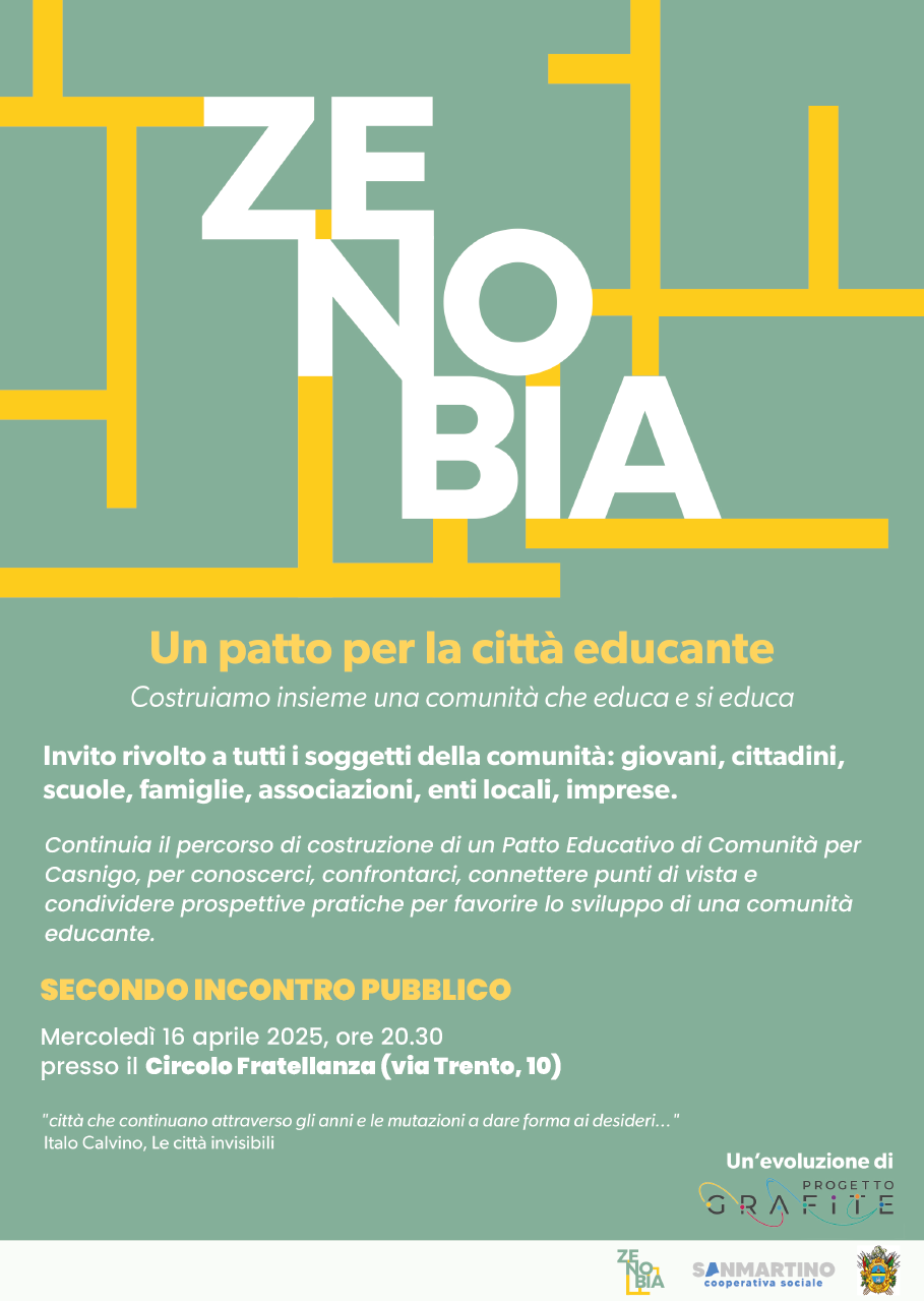Un patto per la città educante, costruiamo insieme una comunità che educa e si educa. Un invito rivolto a tutti i soggetti della comunità: giovani, cittadini, scuole, famiglie, associazioni, enti locali, imprese.