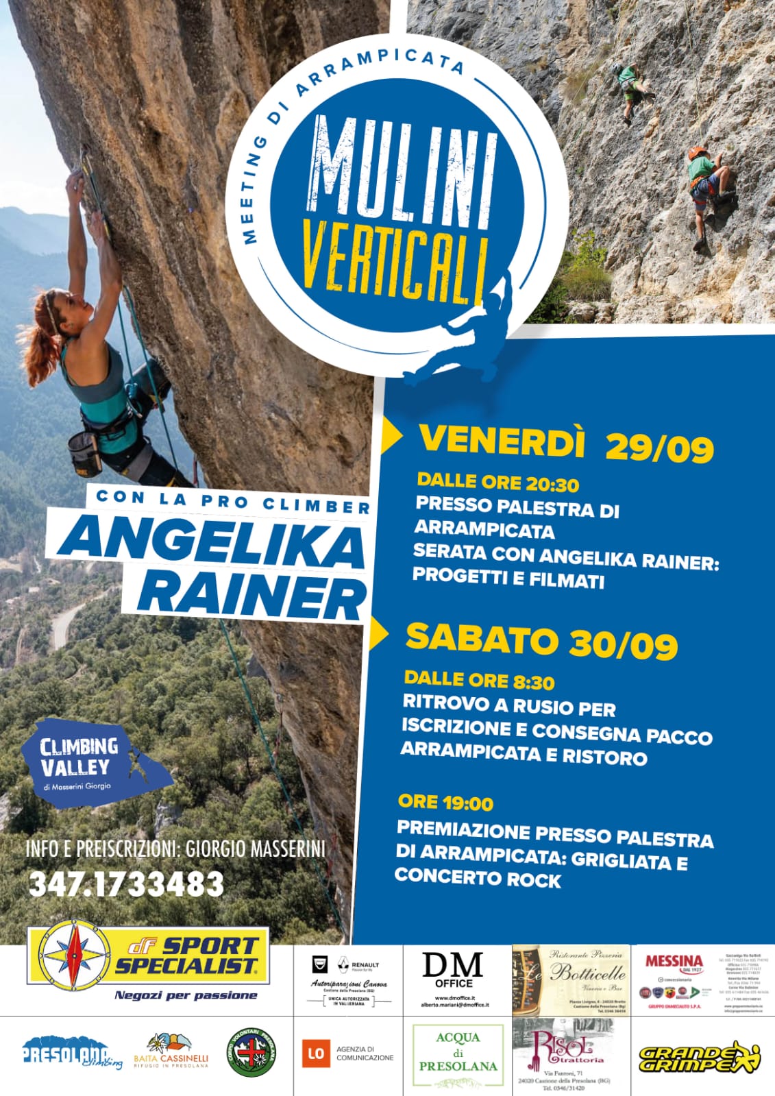 All'interno di due giornate dedicate all'arrampicata nella splendida cornice della valle dei Mulini nella Località di Rusio, con ospite speciale la pro climber Angelina Rainer.