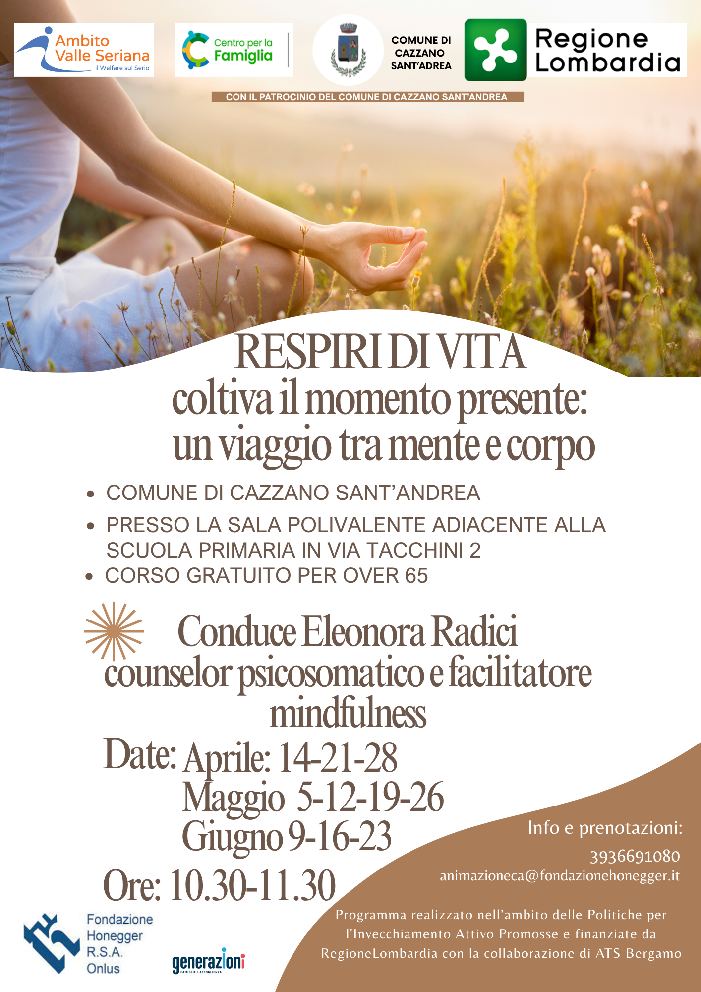 Presso la sala polivalente di Cazzano Sant'Andrea, un percorso gratuito dedicato agli over 65, pensato per favorire benessere, ascolto di sรฉ e presenza nel quotidiano.