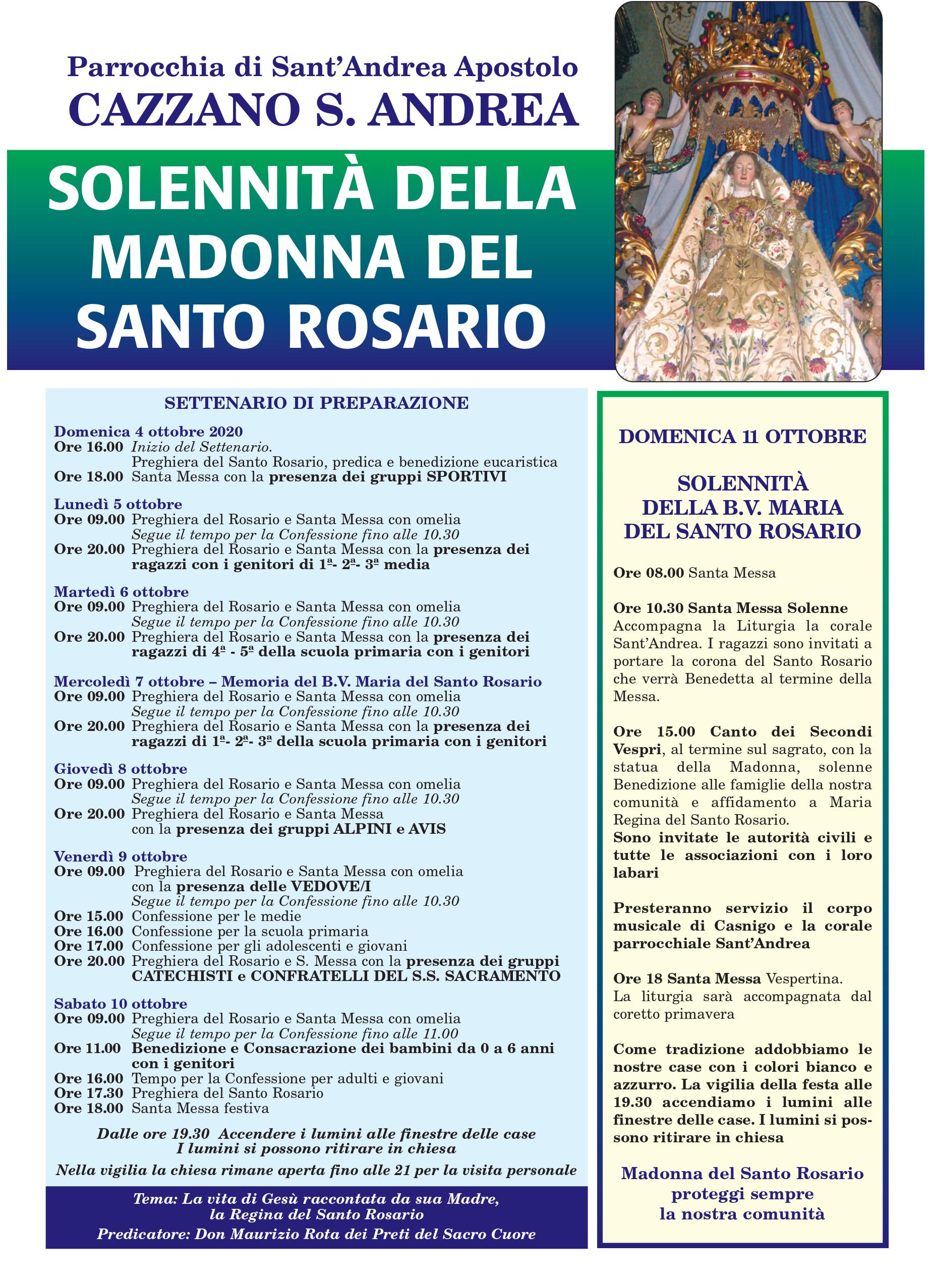 Da domenica 4 ottobre ha inizio il settenario in preparazione alla celebrazione della Solennità della Madonna del Santo Rosario, che si terrà domenica 11 ottobre.