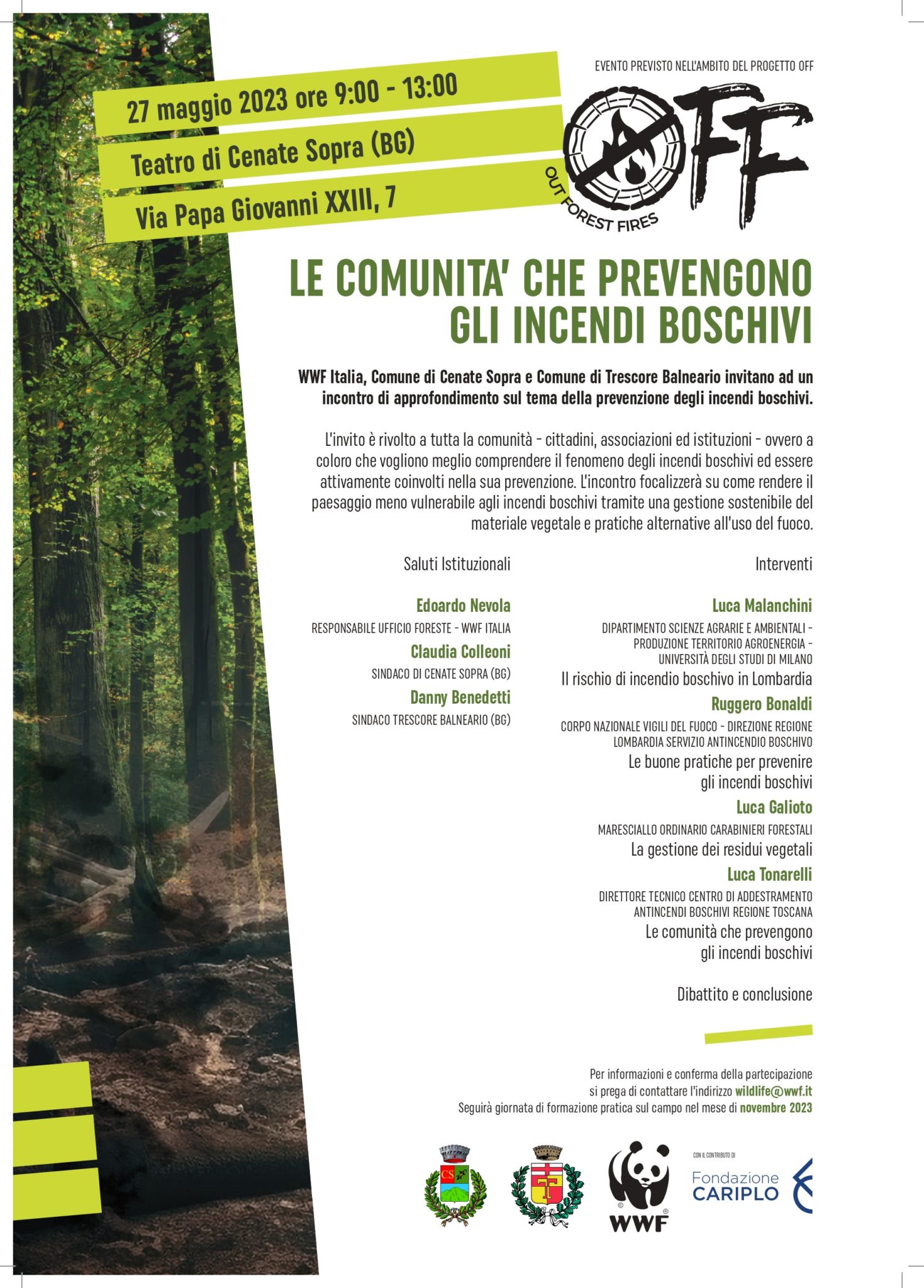 WWF Italia, Comune di Cenate Sopra e Comune di Trescore Balneario invitano ad un incontro di approfondimento sul tema della prevenzione degli incendi boschivi.