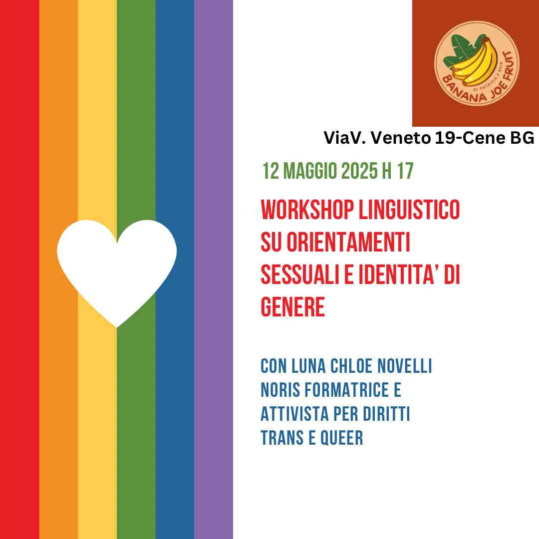 Un workshop linguistico in cui si discuterà sui vari orientamenti sessuali e l'identità di genere, con la partecipazione di Luna Chloe Novelli Noris, formatrice e attivista per i diritti Trans* e Queer.