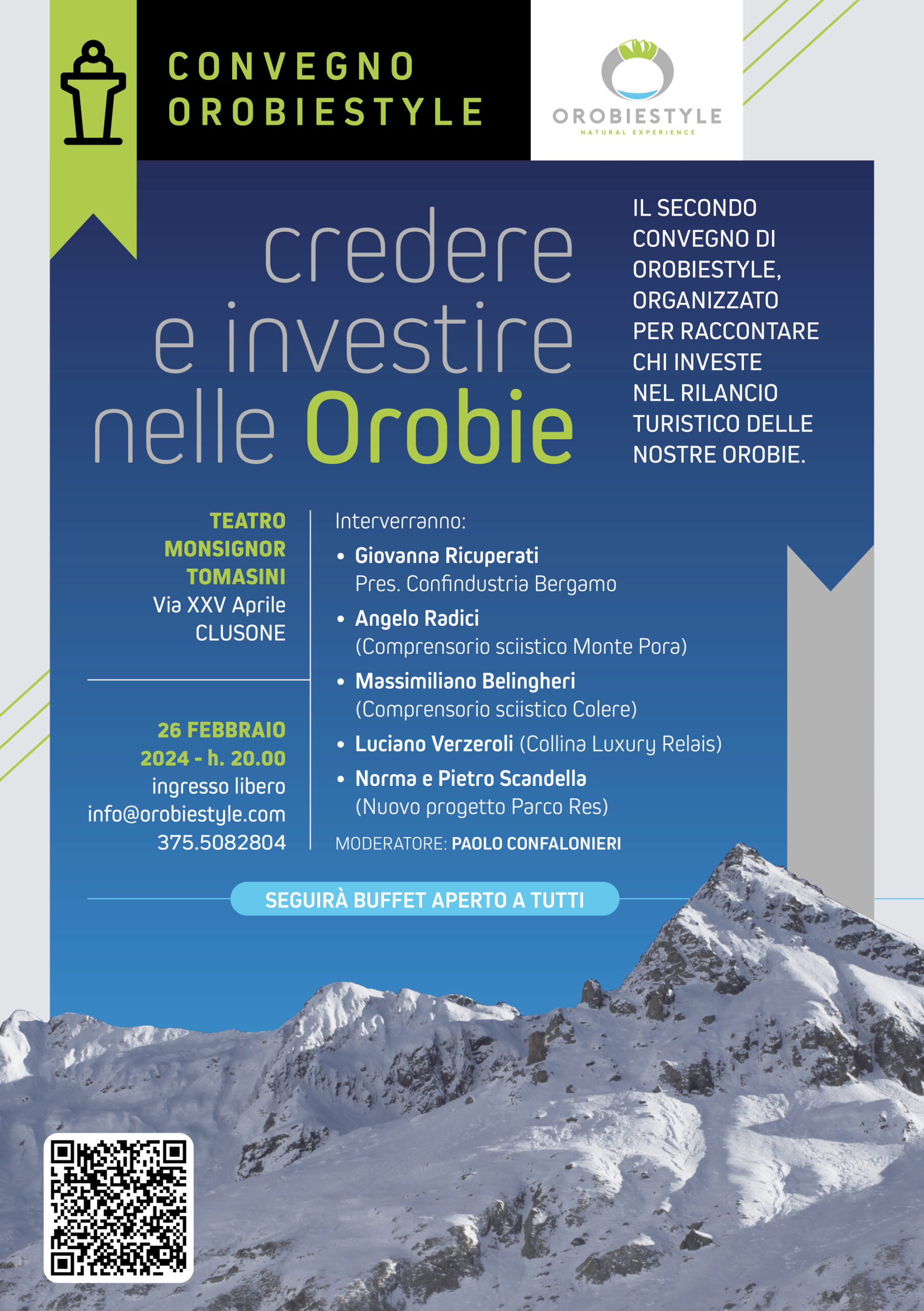 La seconda edizione del convegno Orobiestyle sta per arrivare: l'obbiettivo della serata è far conoscere le sfide che grandi imprenditori intraprendono per valorizzare il territorio e dare uno slancio positivo al turismo delle Orobie.