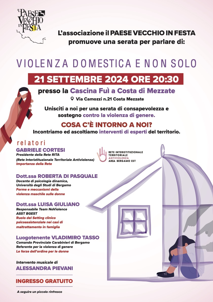 L'associazione Il Paese Vecchio in Festa organizza una serata per di sensibilizzazione sulla violenza di genere. L'incontro ha l'obbiettivo di aumentare la consapevolezza su un tema di estrema importanza e promuovere un dialogo costruttivo all'interno della nostra comunità.