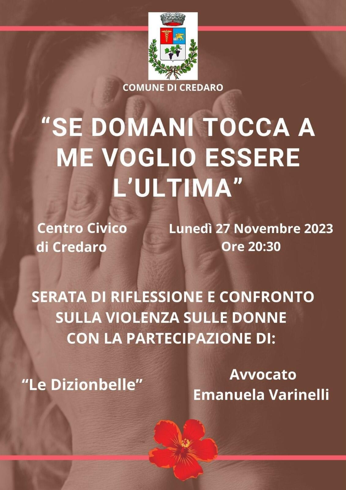 Lunedì 27 novembre, alle ore 20:30, presso il Centro Civico di Credaro, si terrà l'incontro "Se domani tocca a me, voglio essere l'ultima", una serata di riflessione e confronto sulla violenza sulle donne.