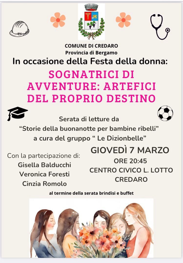 In occasione della Giornata Internazionale della Donna si terrà una serata di letture "Sognatrici di avventure: artefici del proprio destino", presso il centro civico di L. Lotto di Credaro.