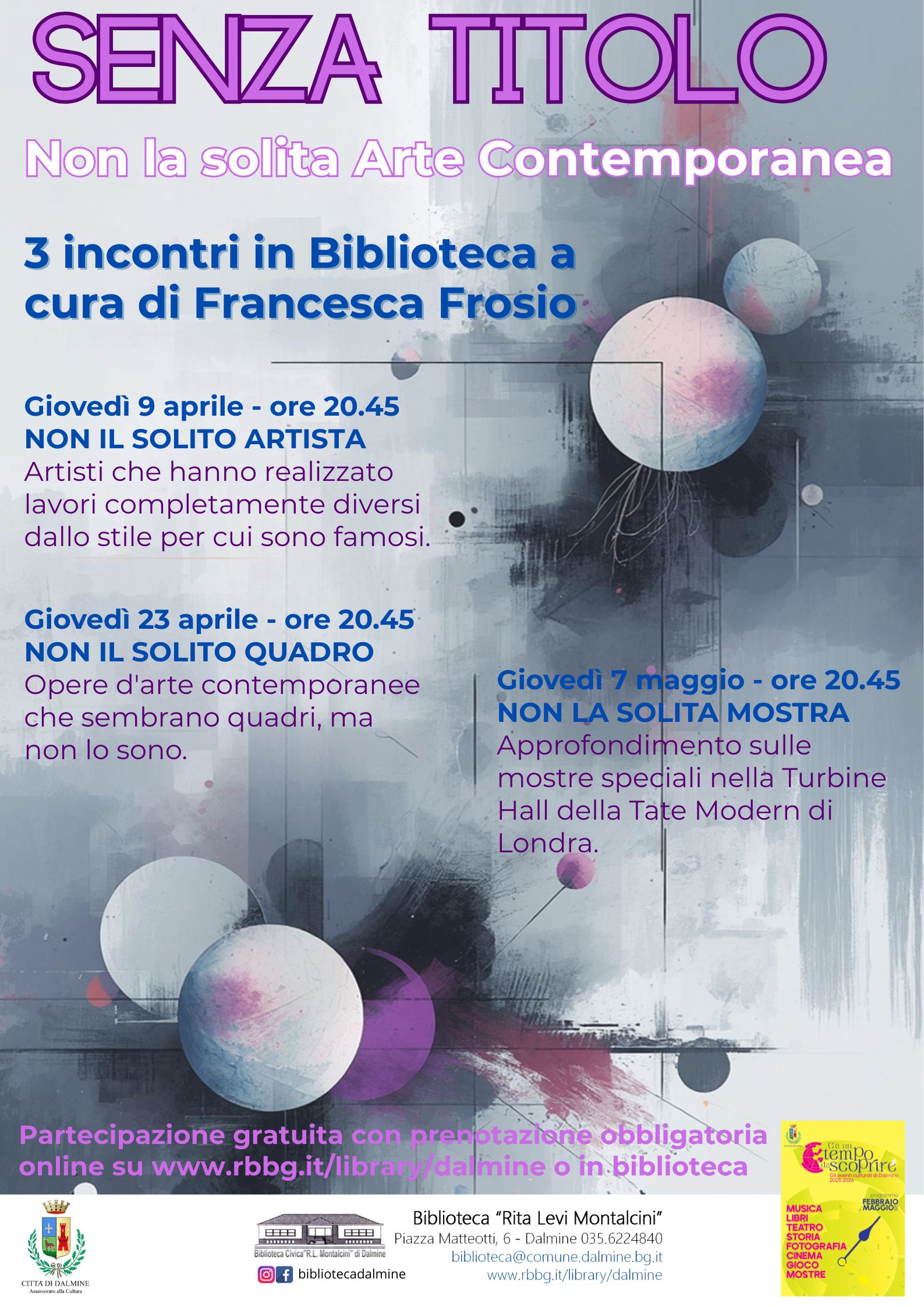 Per il ciclo di incontri ยซSenza Titolo. Non la solita arte contemporaneaยป, alla Biblioteca R. Levi Montalcini di Dalmine รจ in programma un incontro sugli artisti che hanno realizzato lavori diversi dallo stile per cui sono famosi.