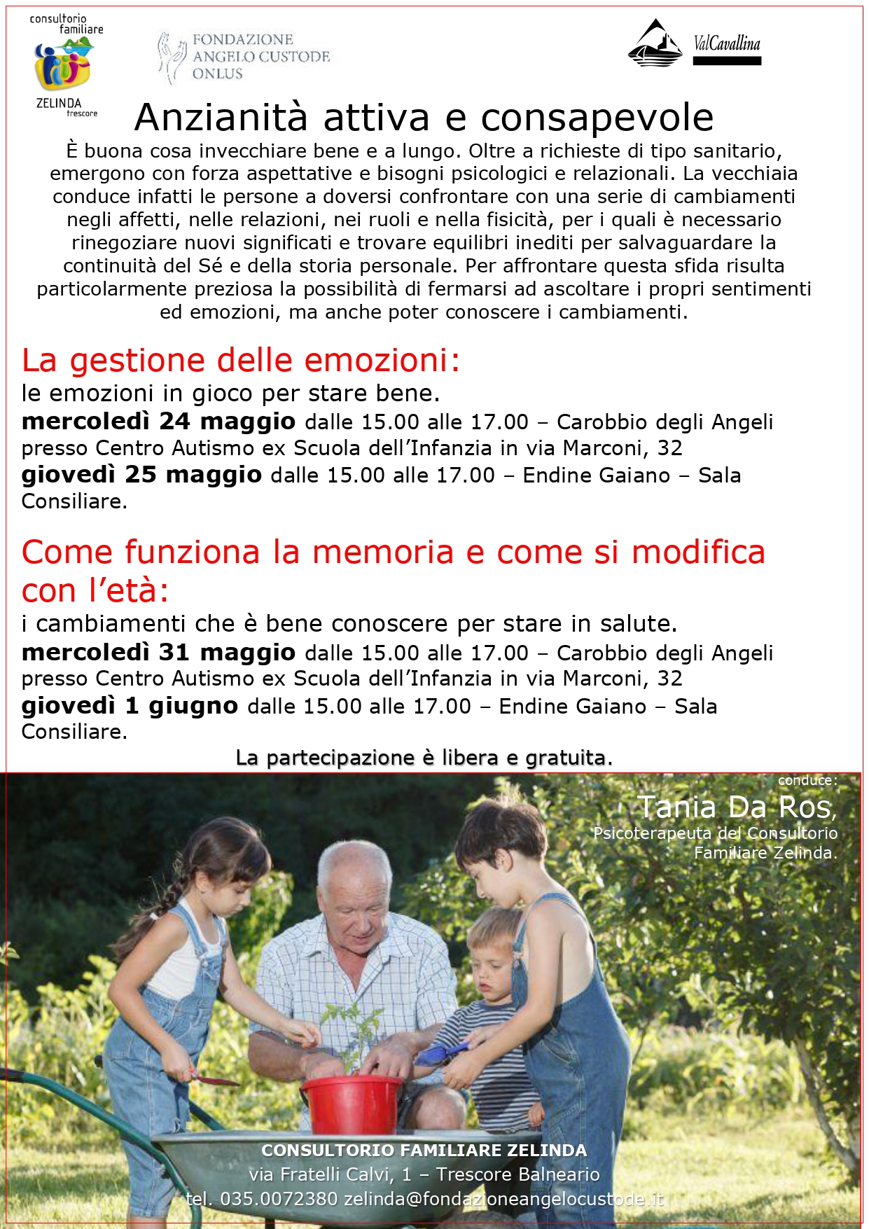 conduce: Tania Da Ros, Psicoterapeuta del Consultorio Familiare Zelinda.