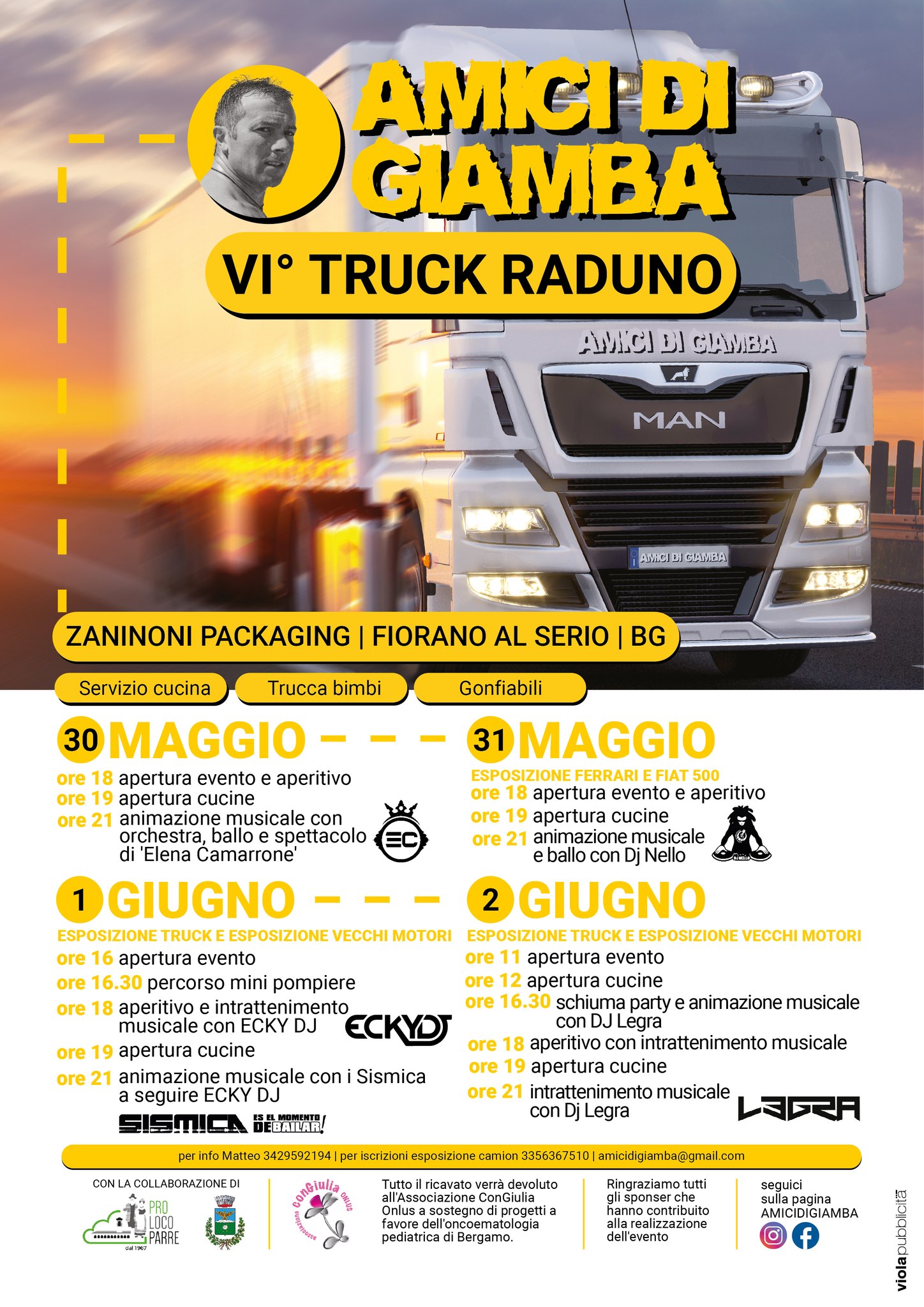 Amici di Giamba organizzano il IV° Truck Raduno presso il parcheggio di Zaninoni Packaging Group a Fiorano al Serio.