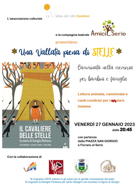 Anche quest’anno per la Giornata della Memoria, l’Associazione "La vallata dei libri bambini" e la Compagnia teatrale amatoriale "Amici sul serio" organizzeranno un percorso di riflessione pensato per le famiglie.