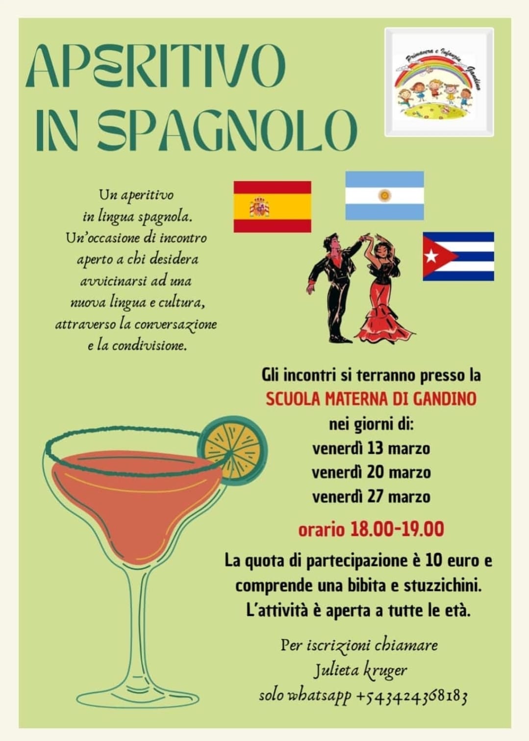 Presso la Scuola Materna di Gandino, un’occasione informale e aperta a tutti per praticare la lingua spagnola e avvicinarsi alle culture ispanoamericane attraverso la conversazione e l’incontro.