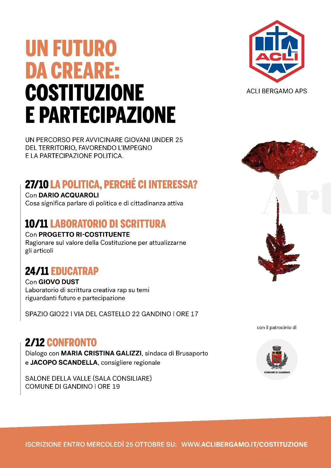 Per l'iscrizione, clicca qui, entro il 25 ottobre.