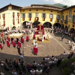 È in programma a Gandino la tradizionale, solenne processione del Corpus Domini. È un evento in cui la comunità esprime lo spessore delle proprie tradizioni e la ricchezza di un apparato assolutamente unico ed incredibile. Il percorso (oltre due chilometri fra le vie del centro storico) sarà caratterizzato dalle «zandaline» tese da un lato all’altro delle strade, dai diversi colori. Oro, argento e sete simboleggiano luce e regalità proprie dell’Eucarestia; per questo i celebranti indosseranno paramenti, realizzati con un raro broccato in oro e argento prodotto a Lione nel 1768, mentre il Ss. Sacramento sarà custodito nell’ostensorio gotico prodotto nel 1527 in Baviera. Il baldacchino (che accompagnerà Eucarestia a celebranti) è un prezioso ganzo veneziano del primo Settecento. Di grande valore il paliotto d’oro che verrà esposto all’altare maggiore della Basilica. Viene proposto solo sei volte l’anno, nelle occasioni liturgiche più solenni. È un capolavoro tessile realizzato con filamenti di oro zecchino, attribuito alla manifattura di Giovanni Pietro Gallarati, originariamente prodotto per il cocchio imperiale utilizzato in occasione delle nozze cinquecentesche di Margherita d’Asburgo e Filippo di Spagna, e giunto a Gandino grazie ai nobili Giovanelli. Alla processione non mancheranno i Paggetti del Ss.Sacramento che indossano le antiche divise nere, realizzate in velluto e seta con decorazioni in oro, gli angeli e i ragazzi che hanno ricevuto i sacramenti dell’iniziazione cristiana nelle ultime settimane. Lungo il percorso altari, statue e allestimenti devozionali segneranno la popolare devozione delle famiglie. A caratterizzare la lunga teoria di fedeli ci saranno le variopinte divise delle quattro Confraternite (Ss.Sacramento, Suffragio, Carmine e San Giuseppe) con stendardi, crocifissi lignei, lampioni, ferule e ceri. La processione sarà accompagnata dalla Corale Luigi Canali e dal Civico Corpo Musicale di Gandino.