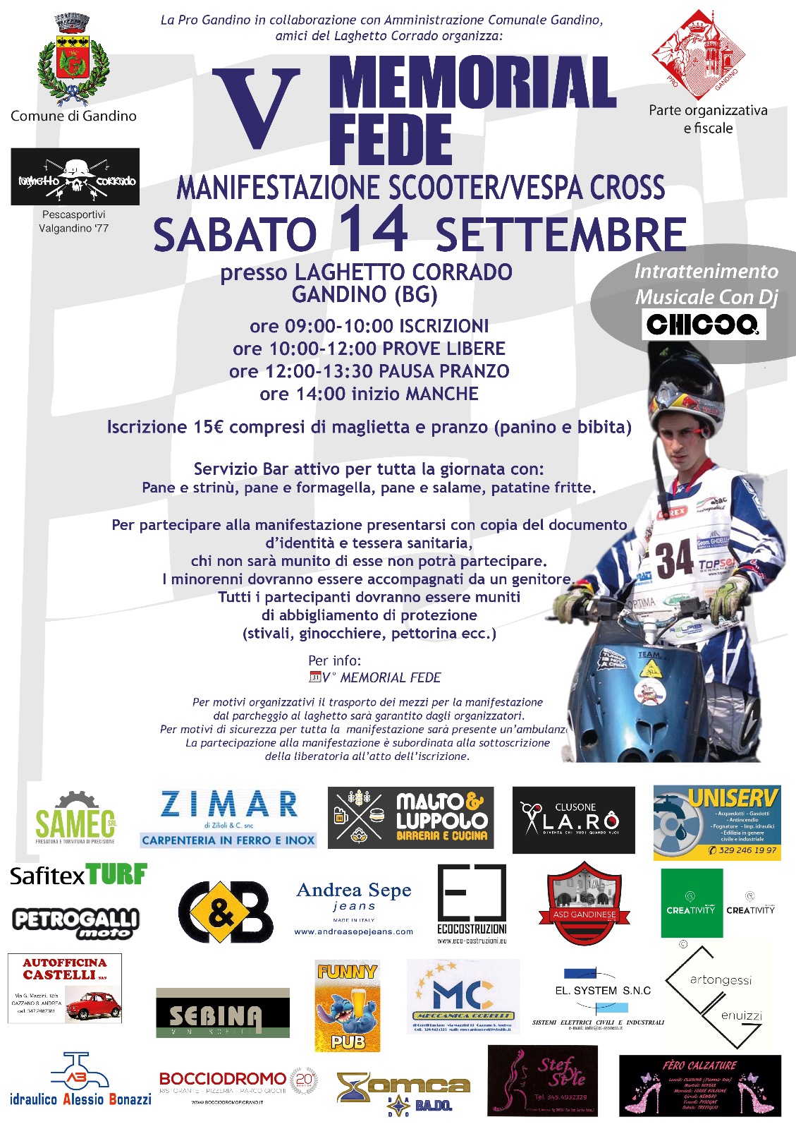 Al via la quinda edizione della manifestazione di scooter/Vespa cross dedicata alla memoria di Federico Ongaro, scomparso non ancora diciannovenne nell’autunno del 2013.