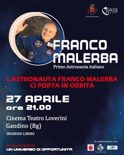 A Gandino parte un mese di esplorazione spaziale. Grazie al coordinamento organizzativo del Comune di Gandino e Seriana Space Valley , sono in programma quattro serate con relatori davvero…spaziali. In quest'occasione, incontro con Franco Malerba.