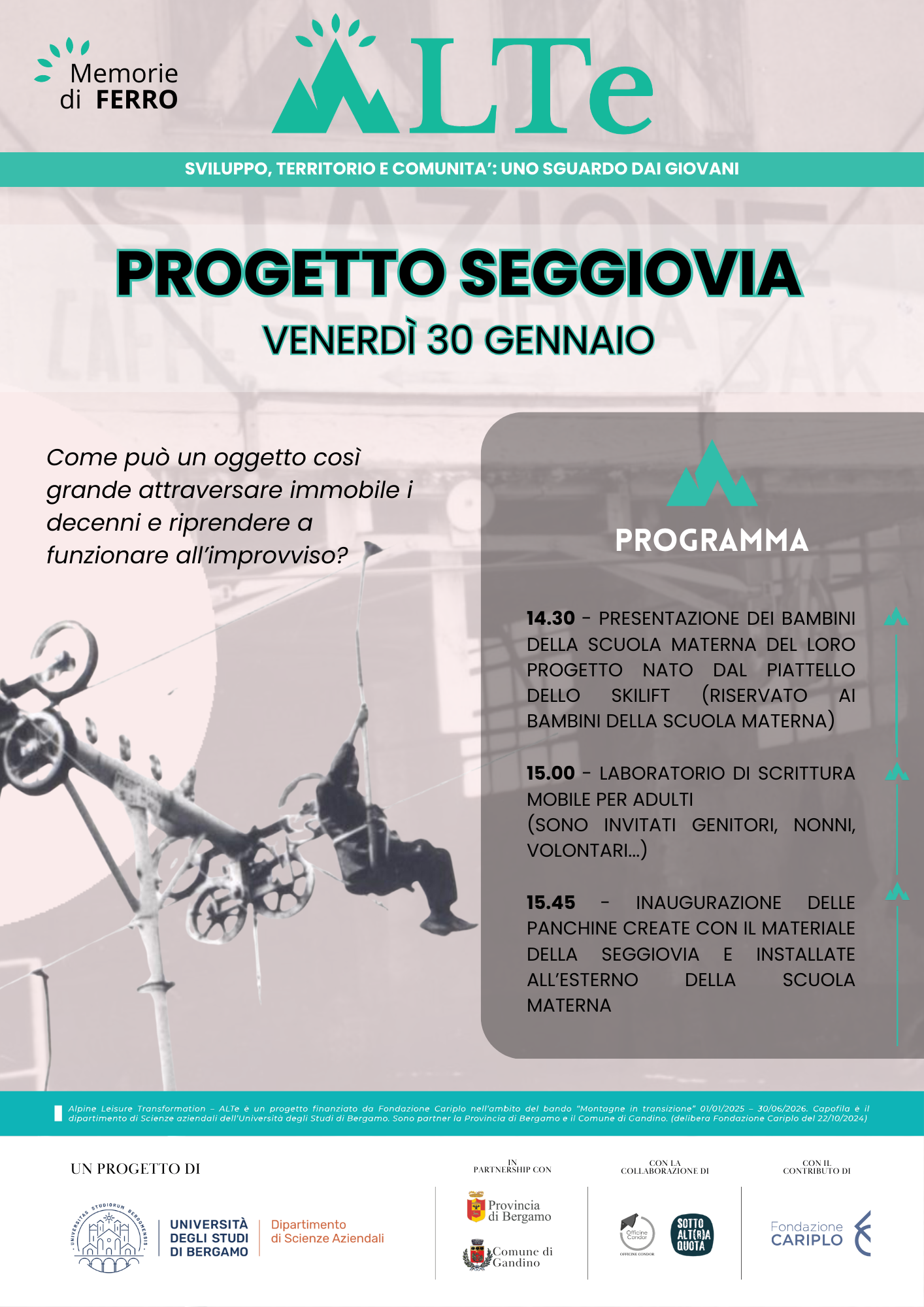 Venerdì 30 gennaio si presenta il Progetto Seggiovia, un’iniziativa che nasce dal desiderio di riflettere sul rapporto tra memoria, territorio e futuro, partendo da un elemento simbolo del paesaggio locale. Un’occasione per interrogarsi su come un oggetto immobile per decenni possa tornare a vivere, assumendo nuovi significati e nuove funzioni all’interno della comunità.