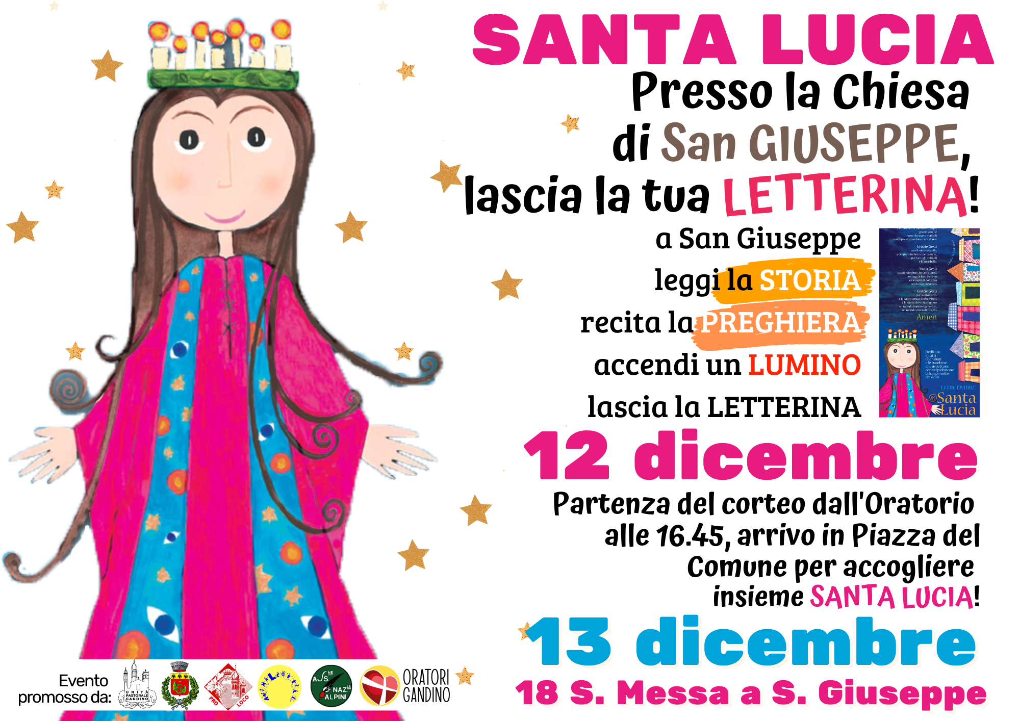 Partenza del corteo dall'Oratorio alle 16.45, arrivo in Piazza del Comune per accogliere insieme Santa Lucia.