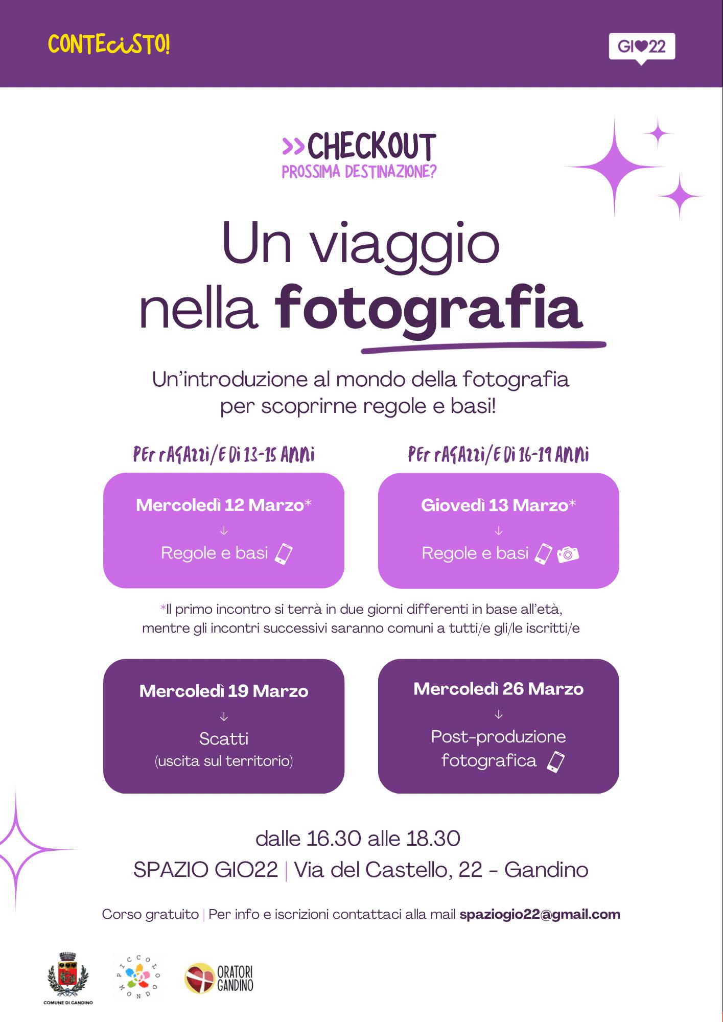Appuntamenti per chi vuole avvicinarsi alla fotografia: un'introduzione alle tecniche di base e uscita sul territorio per mettere in pratica le conoscenze.