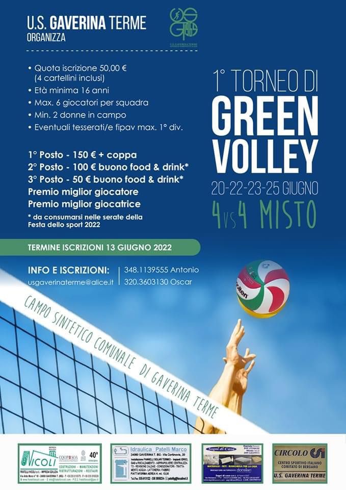 In arrivo il primo torneo di green volley 4 vs 4 misto dal 20 al 25 giugno presso il campo sintetico comunale di Gaverina Terme.