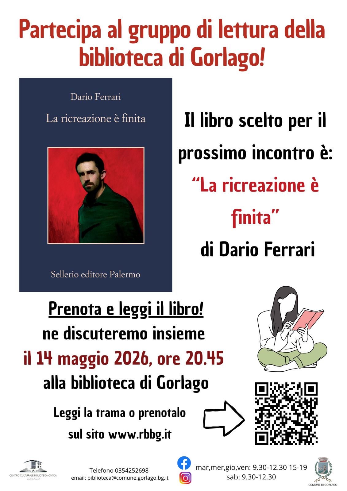 L’incontro si terrà giovedì 14 maggio alle 20.45 presso la biblioteca di Gorlago e sarà un’occasione per condividere riflessioni, impressioni e commenti sul volume insieme ai partecipanti del gruppo.