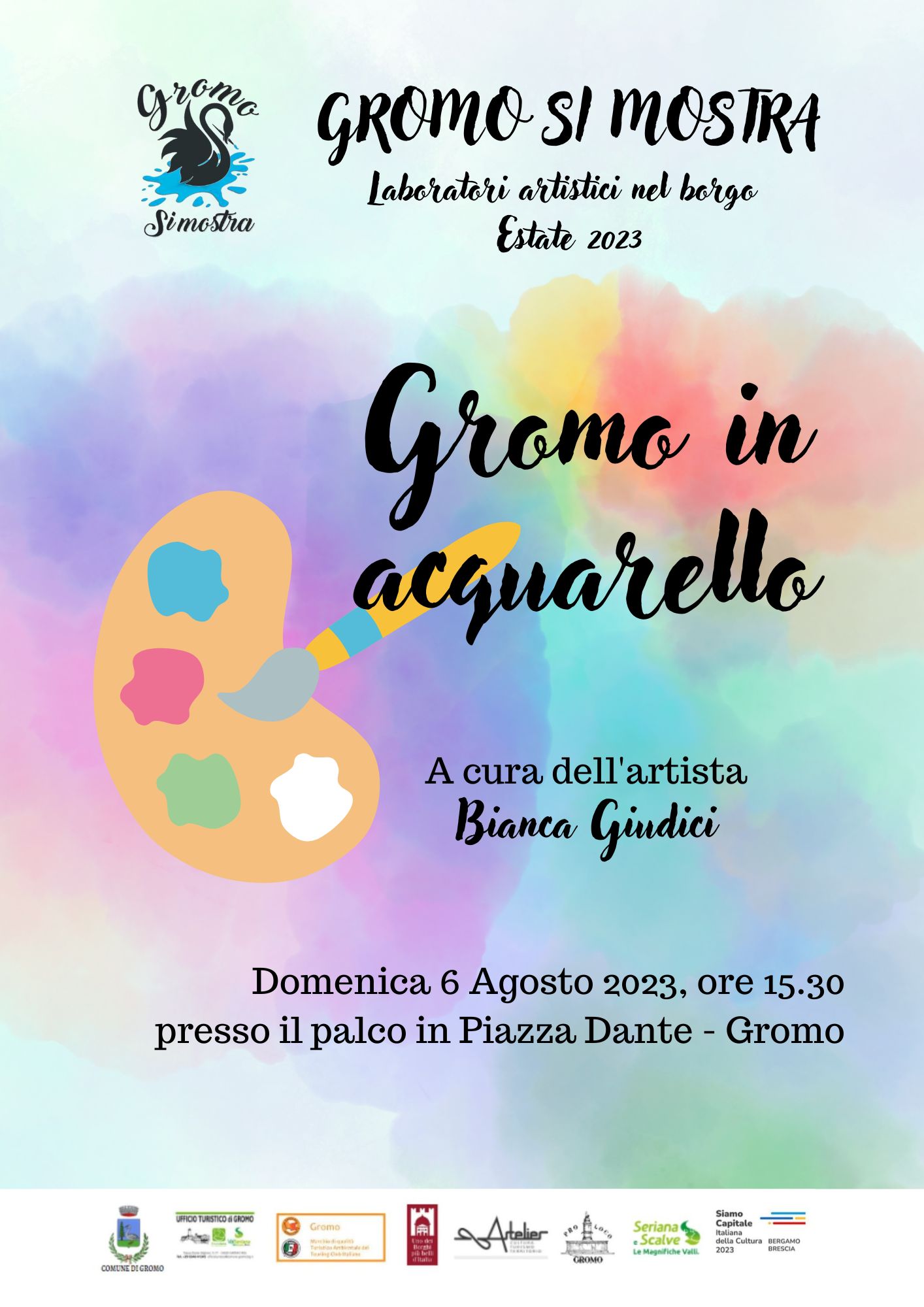 Domenica 6 agosto dalle ore 15.30 presso il palco di Palazzo Milesi in Piazza Dante si terrร il laboratorio artistico โGromo in acquarelloโ, a cura dellโartista Bianca Giudici, allโinterno dellโiniziativa โGromo si mostraโ .