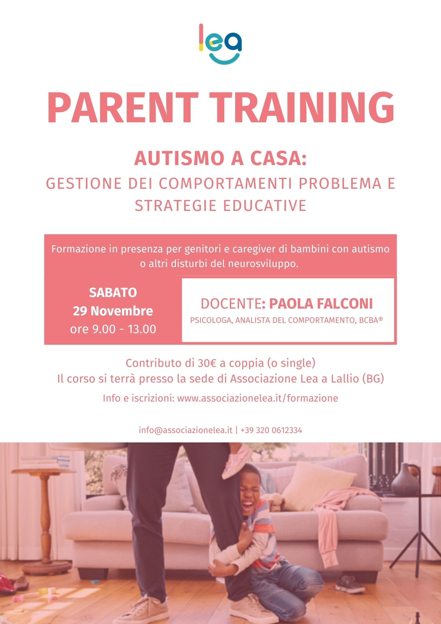 Autismo e comportamenti problema: l’obiettivo è di rendere i genitori agenti attivi del cambiamento. Rivolto a genitori di bambini con disturbo dello spettro autistico o varie problematiche del neurosviluppo.
