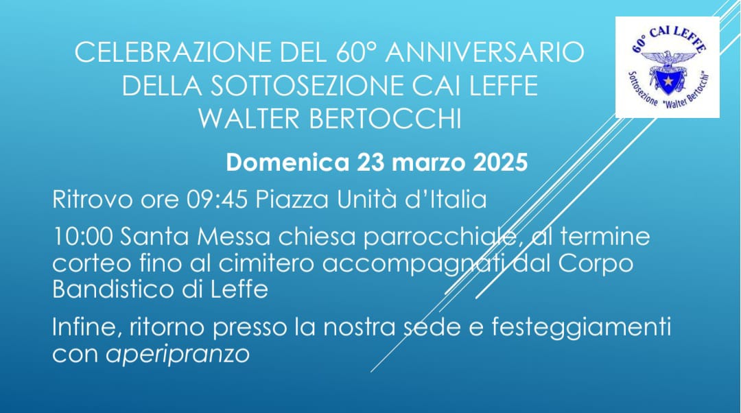 Domenica 23 marzo ci ritroveremo per celebrare insieme i 60 anni della sottosezione CAI Leffe.