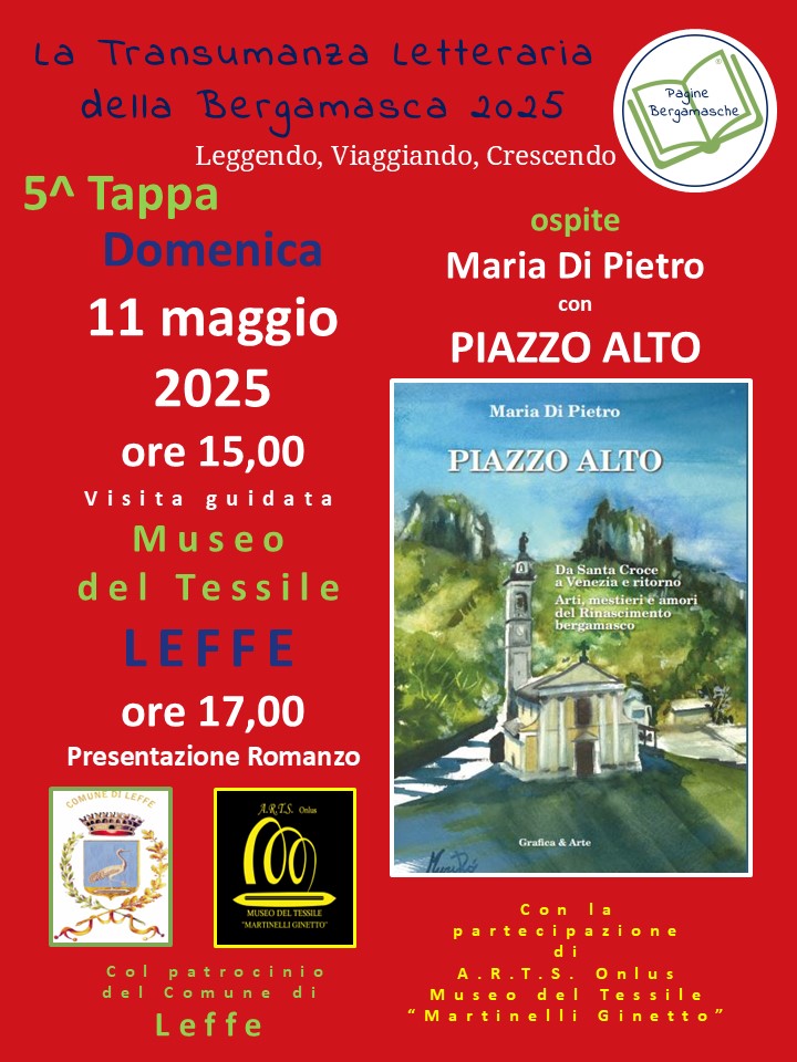 Leggendo, viaggiando, crescendo: un pomeriggio all’insegna della cultura e della scoperta, tra storia, arte e letteratura. Visita guidata al Museo del Tessile e presentazione del romanzo «Piazzo Alto» con l’autrice Maria Di Pietro.