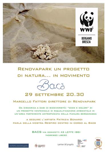 Venerdì 29 settembre dalle ore 20.30, il presidente di WWF Bergamo Brescia Marcello Fattori sarà al BACS di Leffe, per raccontare la sua esperienza ventennale nell'Oasi naturale RENOVAPARK, frutto di un progetto per la creazione di biodiversità, partendo dal degrado di un'area fortemente antropizzata della pianura bergamasca.