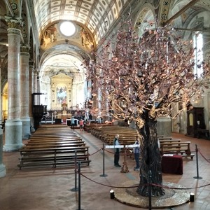 La grande scultura di Mastro 7 (Settimo Tamanini) in rame nativo a fuoco soffiato, cesellato e fiammato, inaugurata giovedì 9 maggio 2024, rimarrà esposta nella Basilica di Santa Maria in Valvendra fino a domenica 29 settembre 2024, e sarà visitabile negli orari di apertura al pubblico consultabili nella pagina dedicata cliccando QUI.