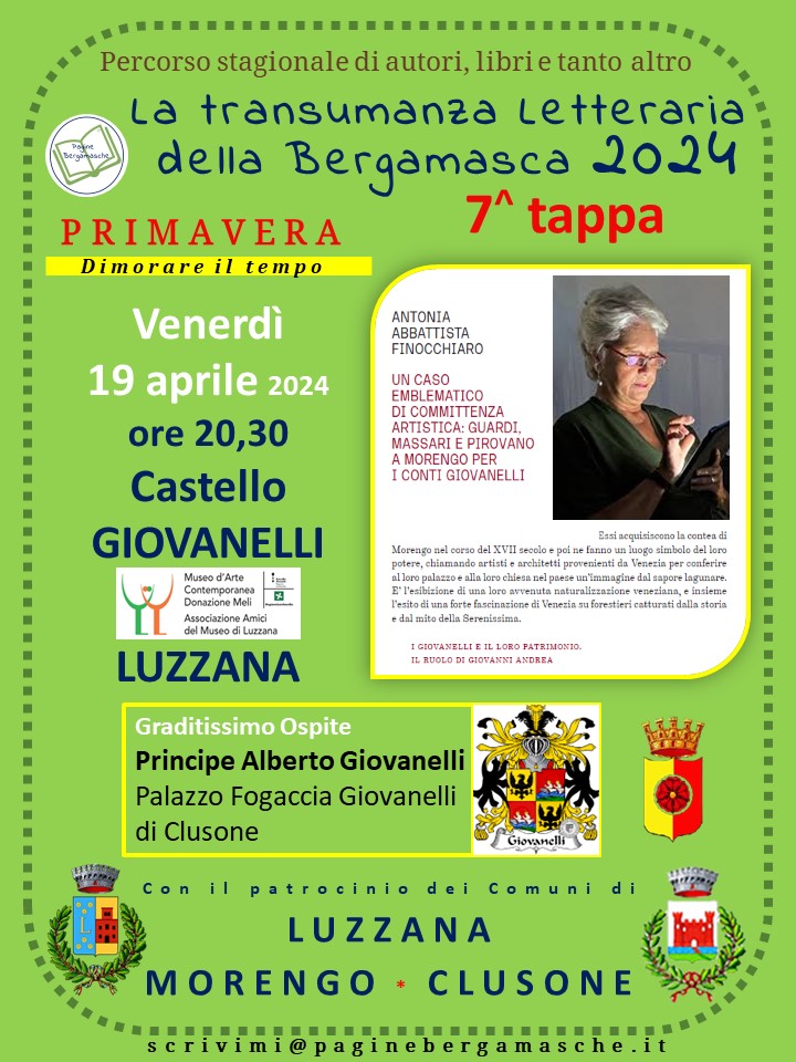 All'interno del Palazzo Giovanelli di Luzzana si racconterà la storia dei Giovanelli di Morengo, grazie alle ricerche e agli studi compiuti dalla Dottoressa Antonia Abbattista Finocchiaro di Morengo. Sia la sede municipale di Luzzana che quella di Morengo, infatti, furono palazzi appartenuti alla Famiglia Giovanelli. Ospite sarà anche il Principe Giovanelli, erede di un altro ramo del casato Giovanelli che risiede tutt'ora a Palazzo Focaccia di Clusone.