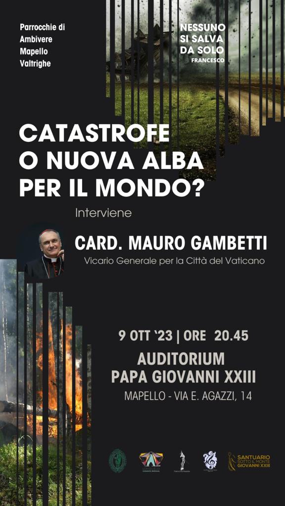 "Catastrofe o nuova alba per il mondo?" è il titolo dell'incontro in cui interverrà Card. Mauro Gambetti, Vicario generale per la Città del Vaticano.