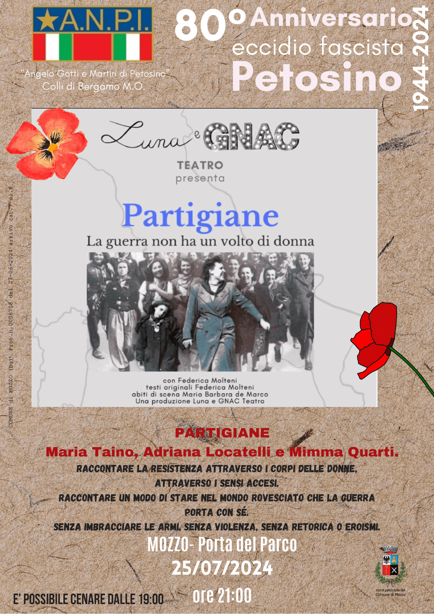 È questo il significato di “Partigiane. La guerra non ha un volto di donna”, lo spettacolo in forma di reading con musica dal vivo della compagnia Luna e Gnac Teatro, scritto e interpretato da Federica Molteni, con le musiche di Pierangelo Frugnoli alla chitarra e gli abiti di scena di Maria Barbara de Marco.