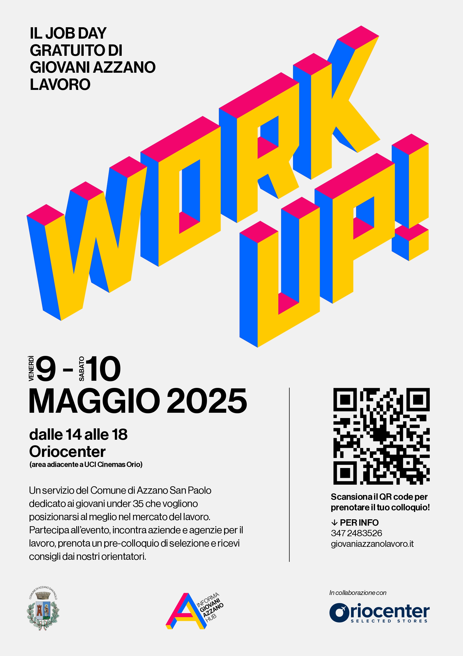 WorkUp! รจ un servizio gratuito del Comune di Azzano San Paolo, in collaborazione con Oriocenter, dedicato ai giovani under 35.