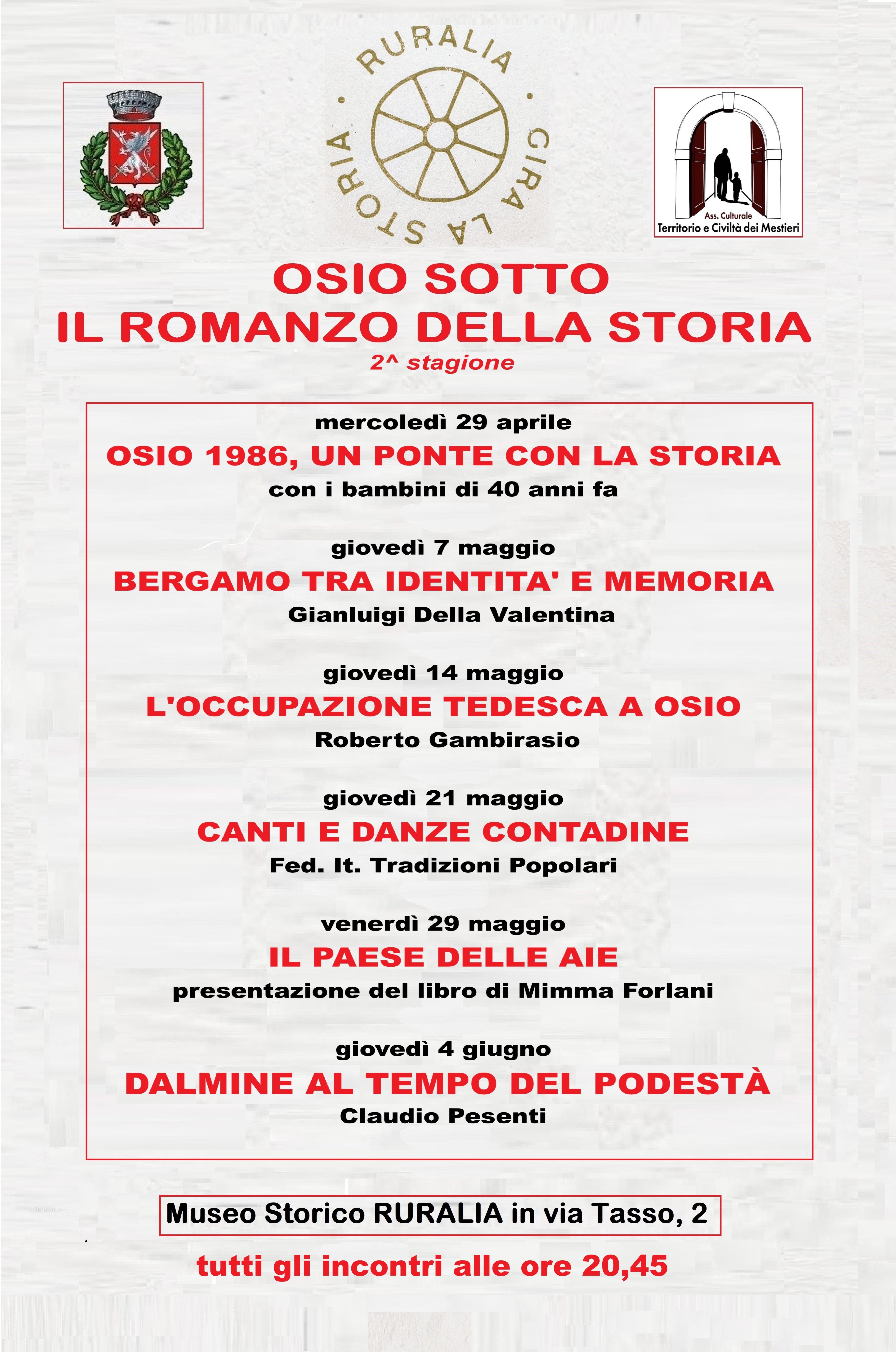 Per il ciclo di incontri ยซOsio Sotto, il romanzo della storiaยป, รจ in programma un incontro al Museo Ruralia con il ricercatore Roberto Gambirasio, che racconterร Osio Sotto dopo l'armistizio del '43.