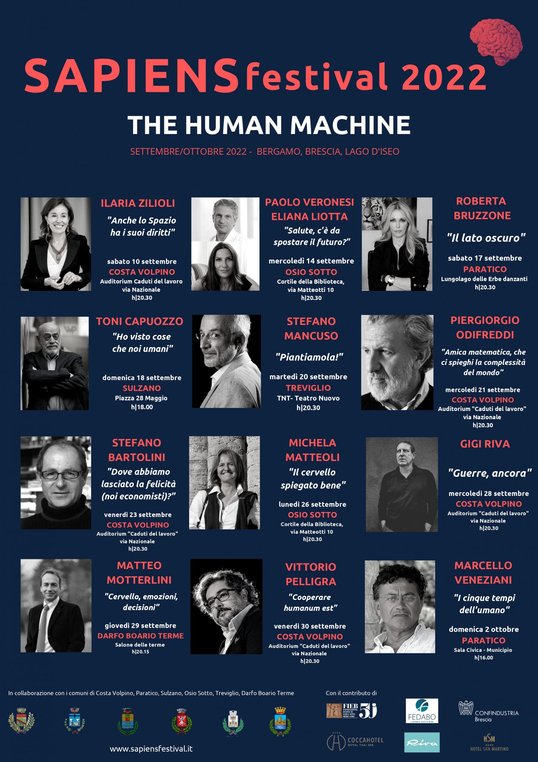 Quarta ed ultima tappa bresciana di "Sapiens Festival", l’appuntamento, a cura del filosofo Marcello Veneziani, è intitolato “I cinque tempi dell’umano” e verterà sul tema della macchina umana e la sua libertà.