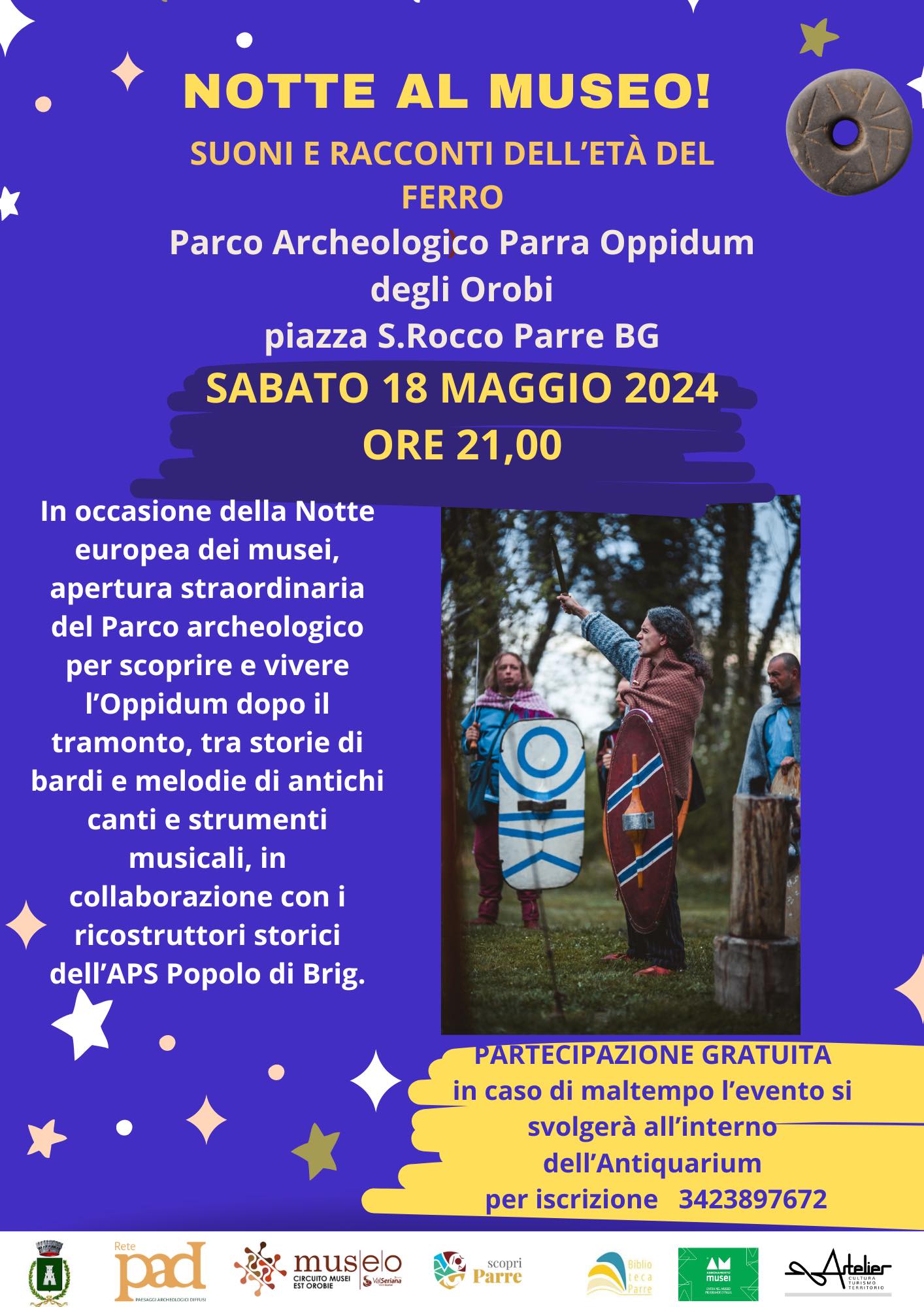Il Parco Archeologico "Parra Oppidum degli Orobi" organizza, in occasione della Notte dei Musei, la serata "Suoni e racconti dell'Età del Ferro".