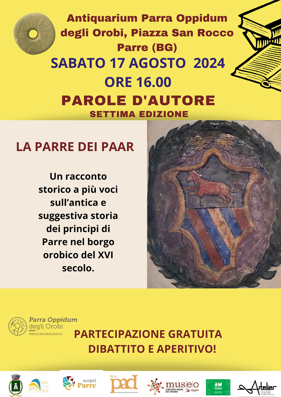 Continuano gli appuntamenti con la 7^ edizione della rassegna "Parole d'Autore". Sabato 17 agosto alle ore 16.00 si terrà la presentazione dei libro "I Paar di Parre".