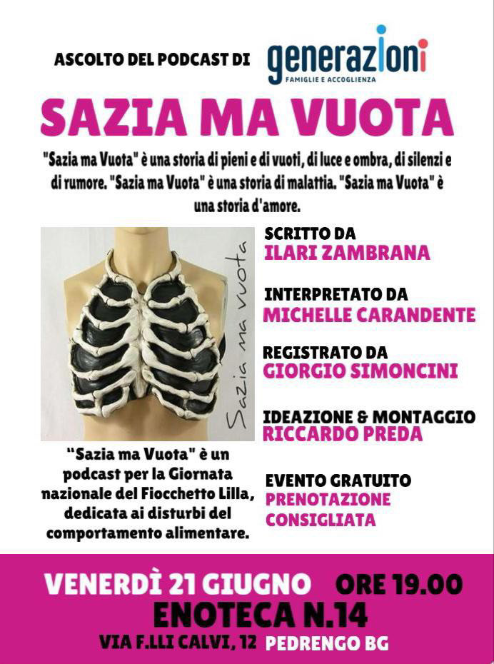 "Sazia ma Vuota" è un podcast per la Giornata nazionale del Fiocchetto Lilla, dedicata ai disturbi del comportamento alimentare.