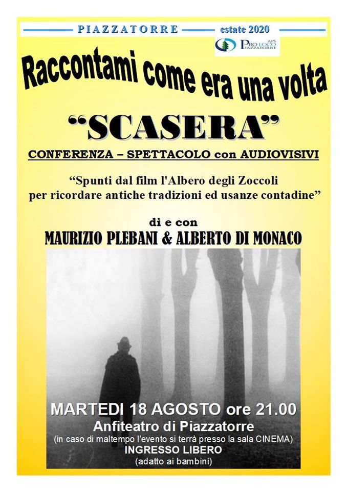 Martedì 18 agosto alle 21 presso l'anfiteatro di Piazzatorre Maurizio Plebani e Alberto di Monaco presentano una serata dal titolo "Scasera".