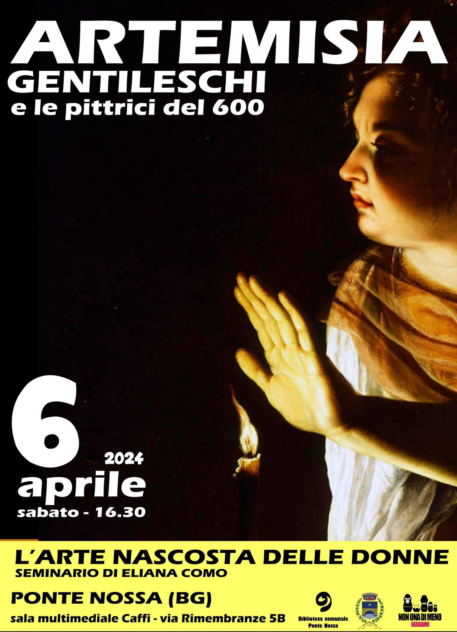 A Ponte Nossa continua il ciclo di incontri dedicato alle donne dell'arte. Questa volta l'appuntamento è con la relatrice Eliana Como, che accompagnerà il pubblico alla scoperta della vita e delle opere di Artemisia Gentileschi.
