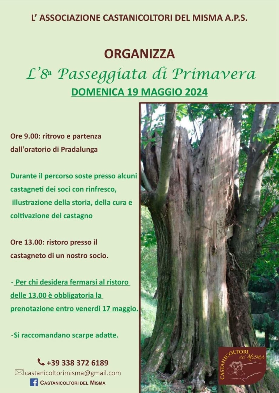 L'Associazione Castanicoltori del Misma organizza l' 8ª Passeggiata di Primavera: "Tra i castagneti di Plazza eredità vivente dei monaci benedettini".