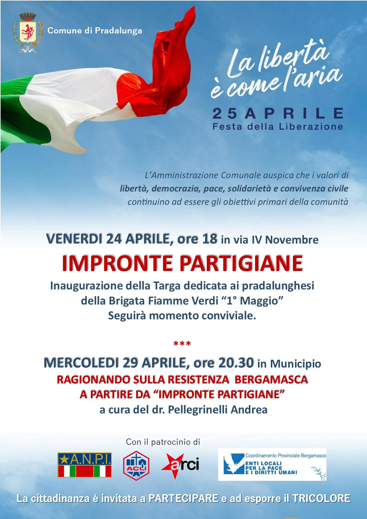 In occasione della Festa della Liberazione, a Pradalunga un incontro serale a cura del dr. Pellegrinelli Andrea.