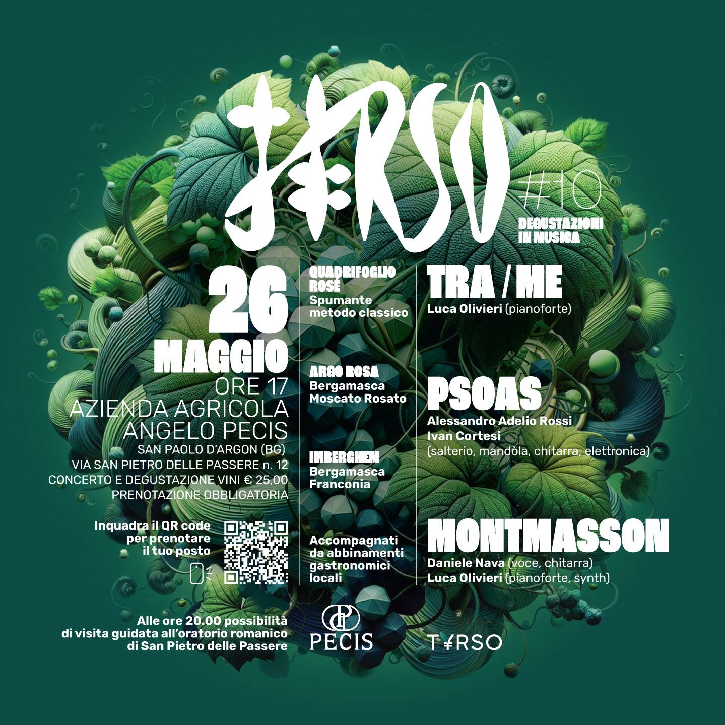 “T¥RSO #10. Degustazioni sonore” vedrà la musica del collettivo dialogare e intrecciarsi per la prima volta con la degustazione di vini – accompagnati da assaggi di prodotti della tradizione – dell’Azienda Agricola Pecis: un Quadrifoglio rosé (Spumante metodo classico), un Argo Rosa (Bergamasca Moscato Rosato) e un Imberghem (Bergamasca Franconia), vino che recupera i vitigni originali della terra bergamasca.