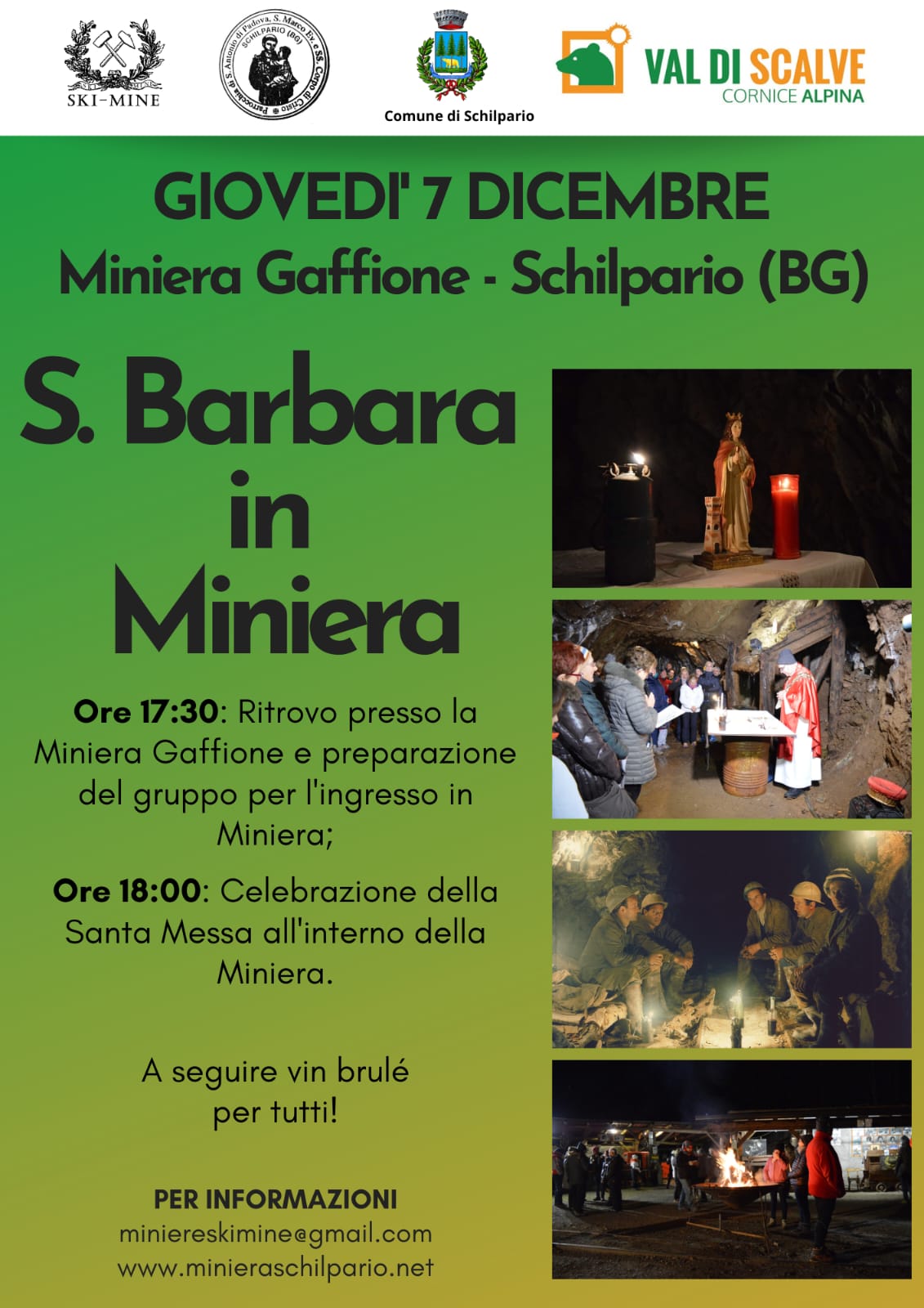 Santa Barbara è considerata la protettrice di chi lavora in miniera, e quale luogo più adatto della Miniera Gaffione per celebrare la Santa e la memoria di tutti i minatori? L'appuntamento è per giovedì 7 dicembre. 17.30